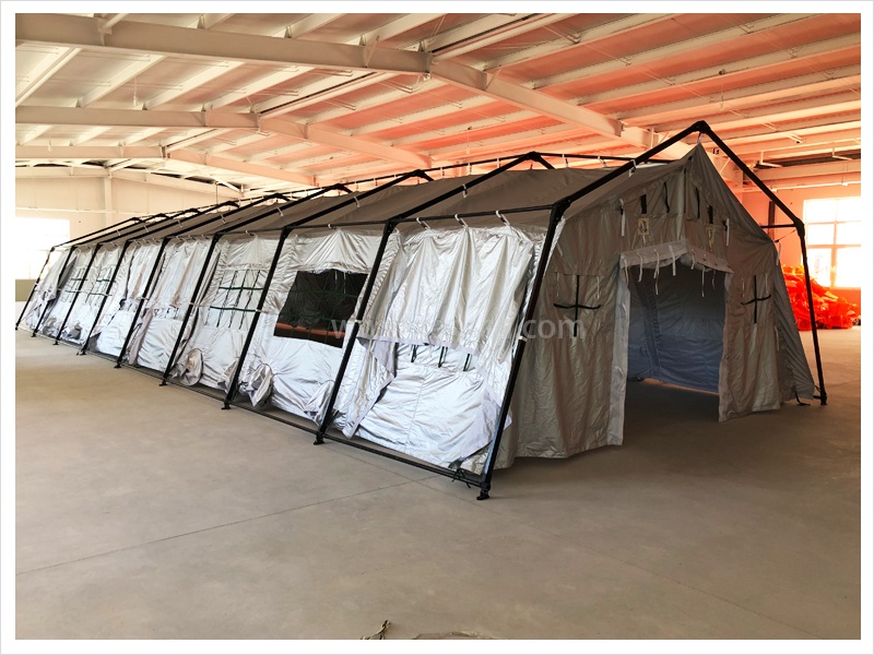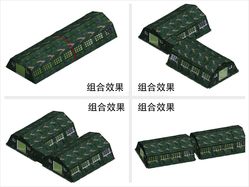 帳篷為斜坡式、外篷雙層結(jié)構(gòu),夏季隔熱、通風(fēng)性能良好,冬季保溫、密封性能良好。篷架采用榀架折疊、橫桿插接機構(gòu),零部件品種少,易于管理。篷體窗墻面積比大,室內(nèi)通風(fēng)采光良好,篷體設(shè)有斜拉式窗蓋和遮篷式通風(fēng)窗蓋,遮陽、遮雨功能良好。帳篷配有防潮地布、防蚊紗門和紗窗,居住性好。帳篷可以多方式任意組合聯(lián)接。